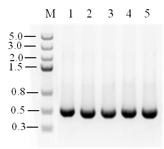 用Blood Direct PCR Kit,從肝素、檸檬酸鈉、EDTA抗凝全血、新鮮血液及從全血中提取中基因組DNA,擴(kuò)增0.5bp的基因片段,血源均來源于老鼠。結(jié)果表明,Blood Direct PCR Kit能從各種血液抗凝劑及新鮮血液中擴(kuò)增出目的基因。