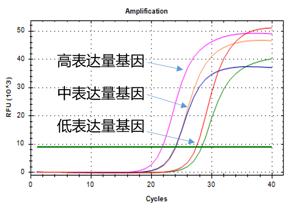 以HeLa細(xì)胞Total RNA為模板,選擇高、中、低三種表達(dá)量的基因,用PreScript Ⅱ Reverse Transcriptase及R418配套的10× RT Reaction Mix進(jìn)行逆轉(zhuǎn)錄反應(yīng),然后用Realtime PCR檢測(cè)多對(duì)基因,結(jié)果表明,對(duì)不同表達(dá)量的基因,PreScript Ⅱ Reverse Transcriptase都具有優(yōu)異的逆轉(zhuǎn)錄能力。